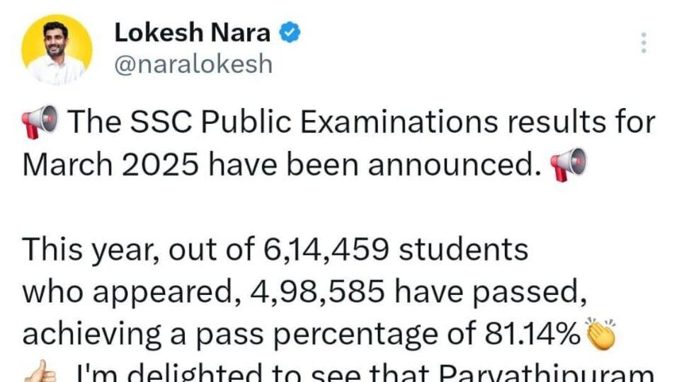 AP SSC 10th Class Results 2025: ఆంధ్రప్రదేశ్ పదో పరీక్షా ఫలితాలు విడుదల అయ్యాయి. ఉదయం 10గంటలకు ఎక్స్ వేదికగా మంత్రి నారా లోకేష్ ఫలితాలను విడుదల చేశారు. ఉత్తీర్ణులైన అభ్యర్థులకు అభినందనలు తెలిపారు. రాష్ట్ర వ్యాప్తంగా 81.14శాతం ఉత్తీర్ణత నమోదైంది. పార్వతీపురం మన్యం జిల్లాలో అత్యధికంగా 93శాతం ఉత్తీర్ణత నమోదైంది.