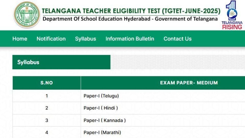తెలంగాణలో ఏడాదికి రెండు సార్లు టెట్ నిర్వహిస్తున్న సంగతి తెలిసిందే. ఇందులో భాగంగా ఫస్ట్ టెట్ (జూన్ సెషన్)నోటిఫికేషన్ విడుదలైంది. ఇందులో భాగంగా దరఖాస్తులను కూడా స్వీకరిస్తున్నారు. ఈ నేపథ్యంలో అభ్యర్థులు అధికారులు కీలక అప్డేట్ ఇచ్చారు. ఈ నోటిఫికేషన్ కు సంబంధించిన సిలబస్ ను అందుబాటులోకి తీసుకువచ్చారు. టెట్ అధికారిక వెబ్ సైట్ నుంచి డౌన్లోడ్ చేసుకోవాలని సూచించారు.