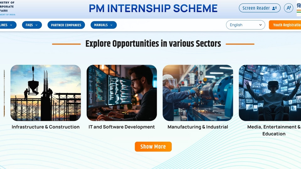 1. ముందుగా అభ్యర్థి pminternship.mca.gov.in అధికారిక వెబ్సైట్ వెళ్లాలి.