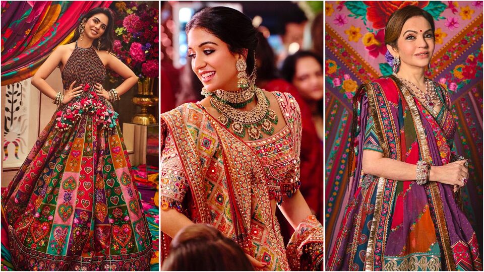 రాధికా మర్చంట్ ఫ్యాషన్ స్టైల్ ఎప్పుడూ 'మాగ్జిమలిజం'లా ఉంటుంది. ముఖ్యంగా సంప్రదాయ దుస్తులు ధరించేటప్పుడు ఆమె ఆకాశమే హద్దు అన్నట్లుగా ఉంటుంది. నవరాత్రులు అంటే ఆమెకు మరింత ఇష్టం. అందుకే, తన పెళ్లికి ముందు జరిగిన గర్భా నైట్ పార్టీలో ఆమె ధరించిన 'తరుణ్ తహిలియాని' డిజైన్ చేసిన 'బంజారా-కుచి' స్టైల్ లెహంగా నవరాత్రికి ఫ్యాషన్ పాఠాలు నేర్పుతుంది. అద్దాల వర్క్, రంగురంగుల దారపు పనులు, సంప్రదాయ డిజైన్లకు ఆధునిక శైలి జోడించి తయారు చేసిన ఈ లెహంగా ఆమెకు పర్ఫెక్ట్గా సరిపోయింది. దీనికి తోడు కస్టమ్ యాక్సెసరీలు ఆమె సిగ్నేచర్ స్టైల్ను మరింత పెంచాయి. జాదౌ ఆభరణాలు, అల్లిన జుట్టుతో ఉన్న ఈ లుక్ పండుగకు చక్కటి స్ఫూర్తినిస్తుంది. అద్దాల వర్క్ అంటే మీకు ఇష్టమైతే, ఆమె ధరించిన మరొక నీలం రంగు లెహంగా కూడా మంచి ఎంపిక. దీనిపై తెలుపు రంగు ఎంబ్రాయిడరీ, అద్దాల వర్క్ కలగలిపి చాలా అందంగా, ఫెస్టివ్ లుక్లో ఉంటుంది.