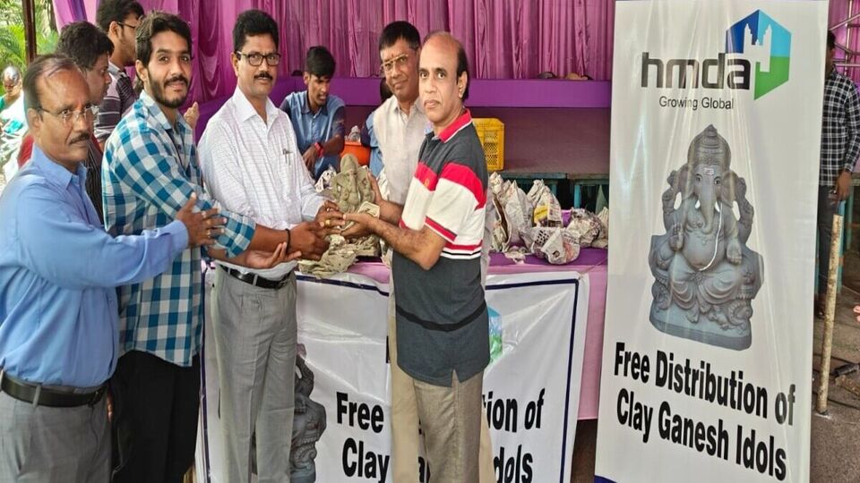 HMDA Ganesh Idols Distribution : హైదరాబాద్ లో గణేష్ చతుర్థి హడావుడి మొదలైంది. కాలనీల్లో గణేష్ మండపాలు సిద్ధమవుతున్నాయి. భారీగా గణేష్ విగ్రహాలను వాహనాల్లో మండపాలకు తరలిస్తున్నారు. అయితే మట్టి గణపతి విగ్రహాలను ఉచితంగా పంపిణీ చేయడంలో హైదరాబాద్ మెట్రోపాలిటన్ డెవలప్ మెంట్ అథారిటీ (హెచ్ఎండీఏ) రికార్డు సృష్టించింది. వరుసగా నాలుగు రోజులపాటు దాదాపు 60 కేంద్రాలలో హెచ్ఎండీఏ యంత్రాంగం 1.5 లక్షల మట్టి వినాయక విగ్రహాలను పంపిణీ చేసింది.